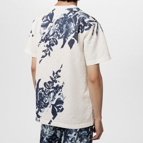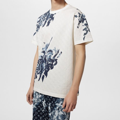 【服装】预订款1个月 Louis Vuitton路易威登 23新款 男士白色纯棉花卉图案短袖T恤1AFAYC