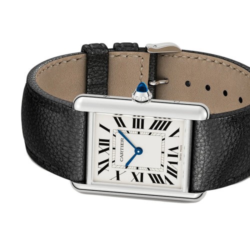 CARTIER/卡地亚 22年秋冬新款 七夕坦克系列 男女同款白色表盘石英机芯精钢表壳黑色粒面小牛皮表带大号腕表33.7*25.5毫米WSTA0041