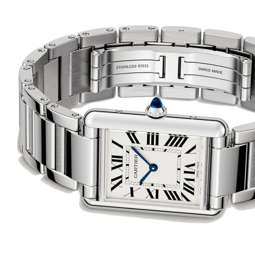 CARTIER/卡地亚 22年秋冬新款 七夕坦克系列 男士白色表盘石英机芯精钢表壳表带大号腕表33.7*25.5毫米WSTA0052