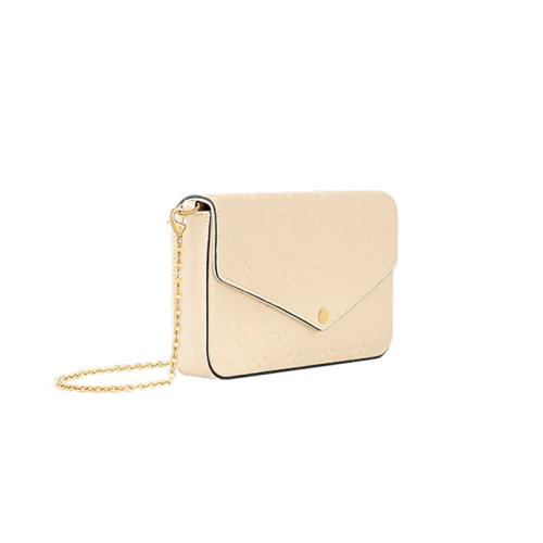 【新品包包】Louis Vuitton/路易威登 23新款 Félicie女士米色压花粒面牛皮链条单肩包/手拿包 M82363