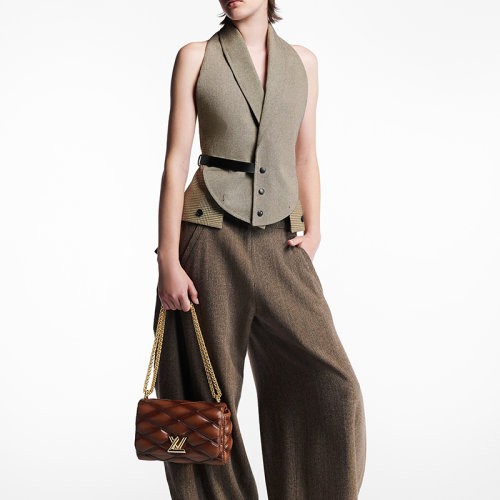(新品包包)LV/Louis Vuitton/路易威登 23新款 女士中号棕褐色菱形绗缝羊皮革扭锁翻盖单肩包 M23601