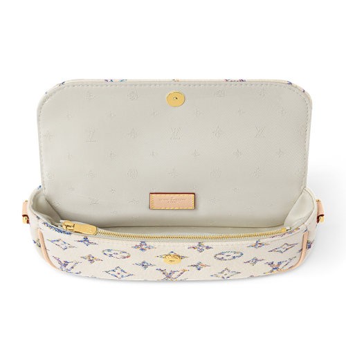 【包税】LV/路易威登 女士米白色织物品牌LOGO提花磁扣开合单肩包M83499